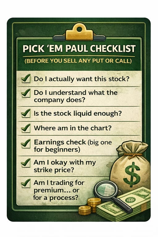 The Pick ’Em Paul Checklist (Before You Sell Any Put or Call)