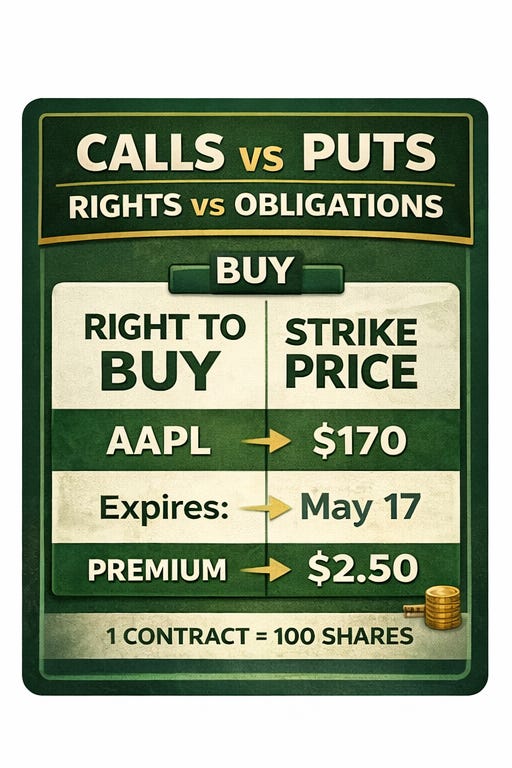 Here’s the part most beginners miss: options are “rights” or “obligations,” depending on whether you buy or sell them.