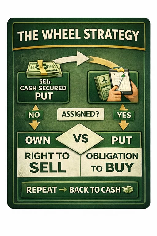 Calls, puts, premium income, and the wheel strategy basics.